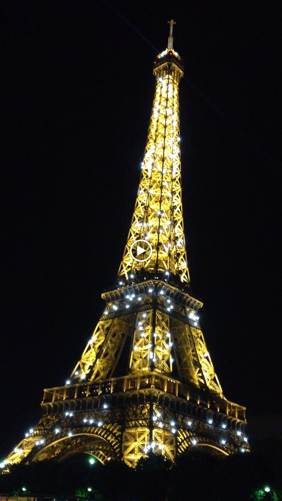 My favorite picture that I took. The Eiffel Tower changes colors. Sometimes it's silver, sometimes it's a dark gray, and sometimes it's gold. It all depends on how the light is hitting it and the time of day.